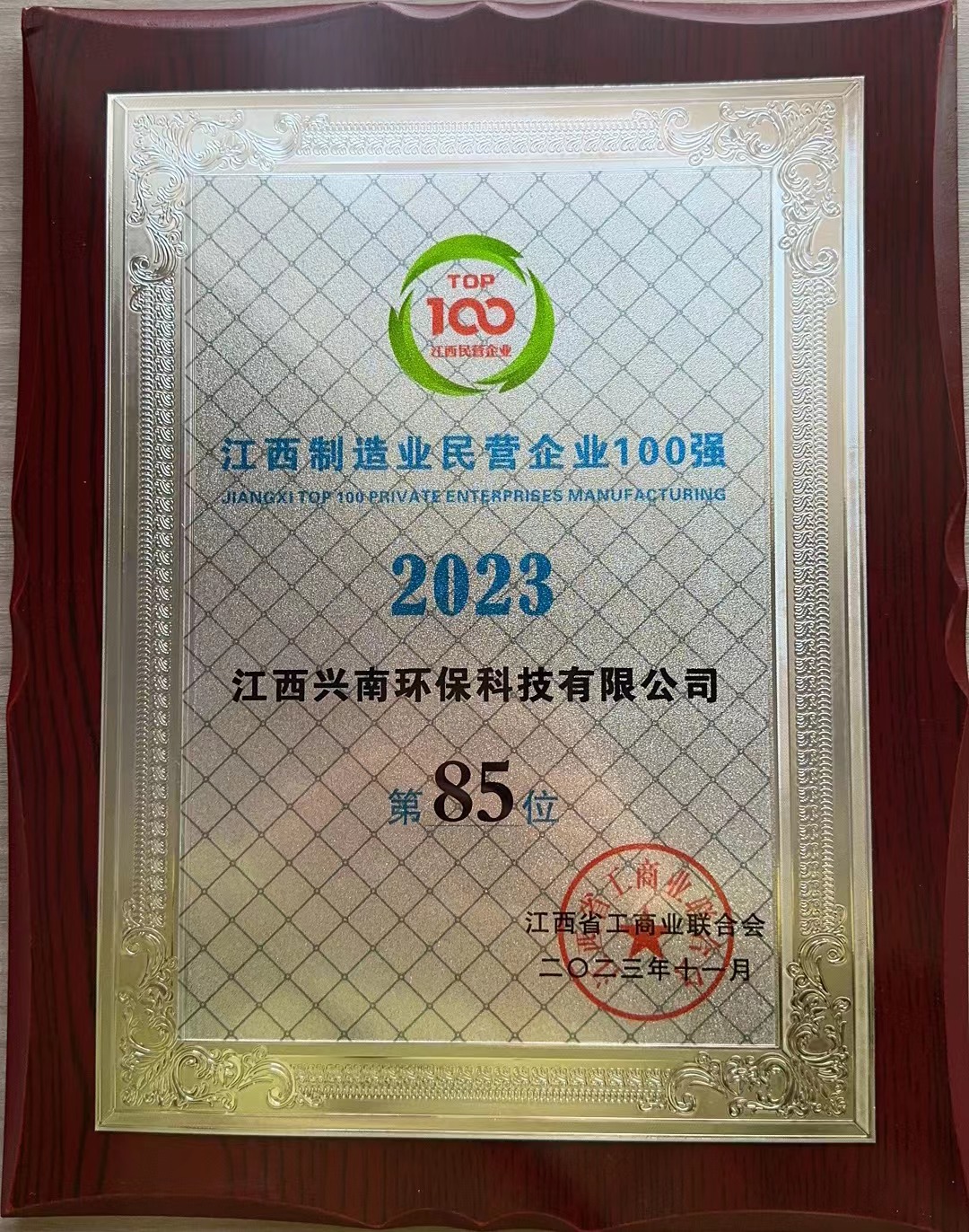 江西興南榮獲2023江西制造業(yè)民營企業(yè)100強第85位